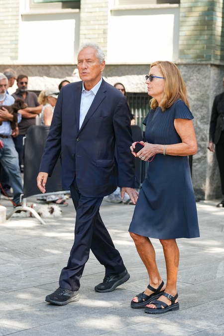 Francesco Rutelli and Barbara Palombelli attending the funeral chamber of Giorgio Armani at the Armani Teatro on September 7, 2025 in Milan, Italy (Photo by Lucia Sabatelli / Bestimage) EDITORIAL USE ONLY