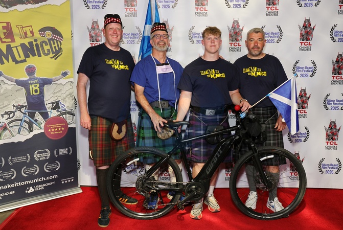 7 Septmber 2025 . Los Angeles, California - Martyn Robertson, Dr. Gordan Mackay, Ethan Walker, Stephan Collie At 'Make it to Munich documentary screening at the Silicon Film Festival held at TCL Chinese 6 Theatres in Los Angeles., Credit:Sadou Faye / Avalon