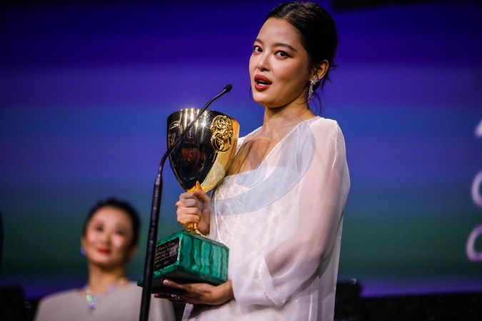 Xin Zhilei after being awarded the Coppa Volpi for Best Actress for "The Sun Rises on Us All" . venice, Italy 06 September 2025, Credit:Mirco Toniolo / Avalon