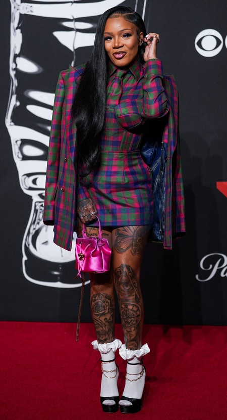 ELMONT, NASSAU COUNTY, NEW YORK, USA - SEPTEMBER 07: American rapper GloRilla (Gloria Hallelujah Woods) wearing Helen Anthony arrives at the 2025 MTV Video Music Awards held at UBS Arena on September 7, 2025 in Elmont, Nassau County, New York, United States., Credit:Jorge Estrellado / Avalon