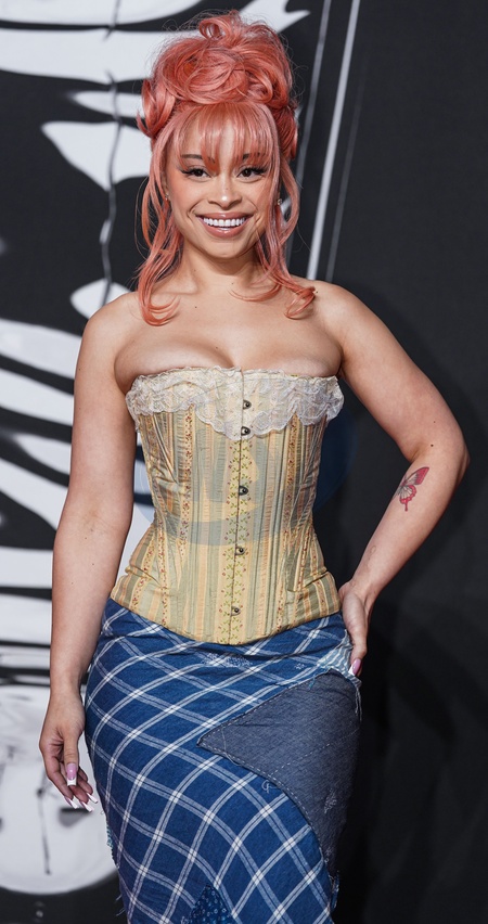 ELMONT, NASSAU COUNTY, NEW YORK, USA - SEPTEMBER 07: American rapper and songwriter Ice Spice (Isis Naija Gaston) wearing vintage Ralph Lauren arrives at the 2025 MTV Video Music Awards held at UBS Arena on September 7, 2025 in Elmont, Nassau County, New York, United States., Credit:Jorge Estrellado / Avalon