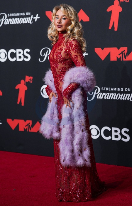 ELMONT, NASSAU COUNTY, NEW YORK, USA - SEPTEMBER 07: American singer, songwriter, and actress Sabrina Carpenter wearing Valentino arrives at the 2025 MTV Video Music Awards held at UBS Arena on September 7, 2025 in Elmont, Nassau County, New York, United States., Credit:Jorge Estrellado / Avalon