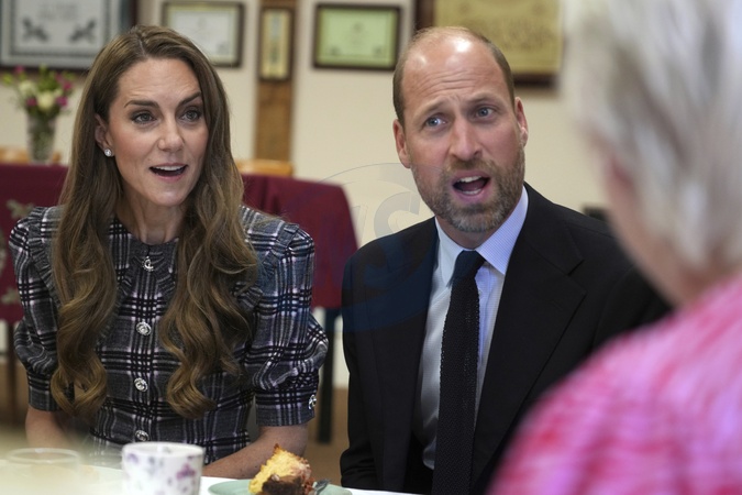 Britain's Kate and Prince William listen as they visit the National Federation of Women's Institute (WI) to commemorate the three-year anniversary of the death of Queen Elizabeth II in Sunningdale, England, Monday, Sept. 8, 2025., Credit:Alastair Grant / Avalon