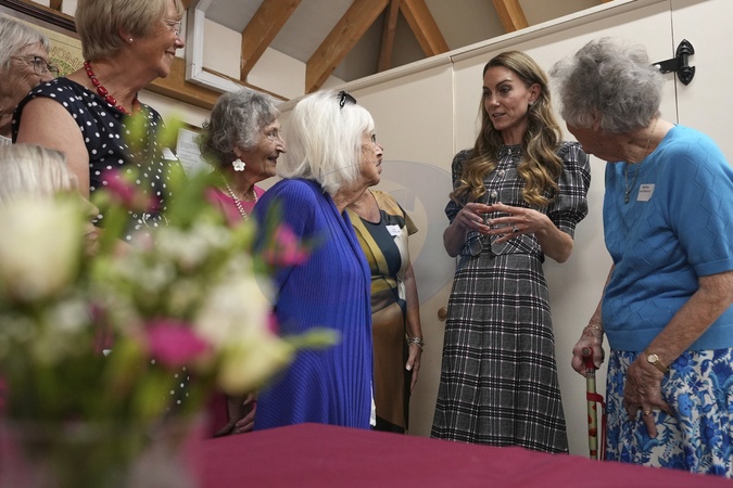 Britain's Kate talks to members as she visits the National Federation of Women's Institute (WI) to commemorate the three-year anniversary of the death of Queen Elizabeth II in Sunningdale, England, Monday, Sept. 8, 2025., Credit:Alastair Grant / Avalon