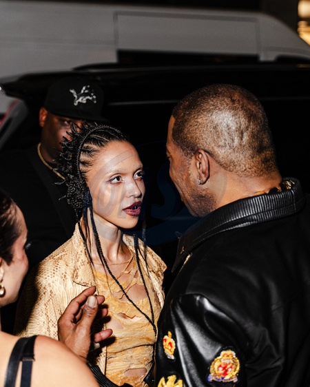 Les célébrités à la sortie de l'after party des "MTV Video Music Awards (VMA)" à New York, le 7 septembre 2025. © UrbanxDivinity / Bestimage Singer FKA Twigs and Rapper Busta Rhymes having a talk after leaving a VMAS afterparty lastnight in NYC. September 8th 2025
