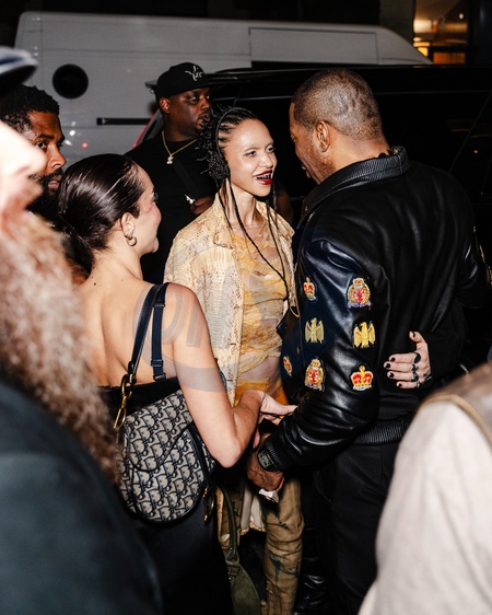 Les célébrités à la sortie de l'after party des "MTV Video Music Awards (VMA)" à New York, le 7 septembre 2025. © UrbanxDivinity / Bestimage Singer FKA Twigs and Rapper Busta Rhymes having a talk after leaving a VMAS afterparty lastnight in NYC. September 8th 2025