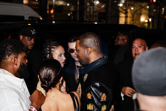 Les célébrités à la sortie de l'after party des "MTV Video Music Awards (VMA)" à New York, le 7 septembre 2025. © UrbanxDivinity / Bestimage Singer FKA Twigs and Rapper Busta Rhymes having a talk after leaving a VMAS afterparty lastnight in NYC. September 8th 2025