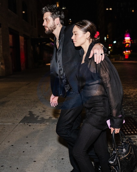 Les célébrités à la sortie de l'after party des "MTV Video Music Awards (VMA)" à New York, le 7 septembre 2025. © UrbanxDivinity / Bestimage Rapper G-Eazy and girlfriend Jenaye Noah leaving a VMAS afterparty lastnight in NYC september 8th 2025