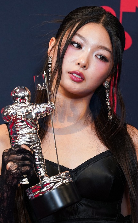 ELMONT, NASSAU COUNTY, NEW YORK, USA - SEPTEMBER 07: Yoonchae Jeong of KATSEYE poses in the press room at the 2025 MTV Video Music Awards held at UBS Arena on September 7, 2025 in Elmont, Nassau County, New York, United States., Credit:Jorge Estrellado / Avalon
