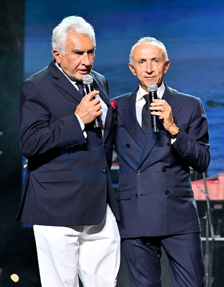 Exclusif - Bernard d'Alessandri, le secrétaire et directeur général du Yacht Club de Monaco, et Alberto Galassi, le PDG du Groupe Ferretti - Le groupe Simply Red a enflammé une scène flottante au Yacht Club de Monaco pour la soirée Ferretti Group, organisée dans le cadre du Monaco Private Preview. Entouré d'une flotte de superyachts étincelants, Mick Hucknall et ses musiciens ont livré un show vibrant, lançant en beauté leur tournée mondiale anniversaire tout en célébrant la décennie d'excellence de Ferretti. Monaco, le 7 septembre 2025. © Bruno Bebert/Bestimage Exclusive - No Web en Suisse / Belgique Simply Red rocked a floating stage at the Yacht Club de Monaco for the Ferretti Group party, held as part of the Monaco Private Preview. Surrounded by a fleet of gleaming superyachts, Mick Hucknall and his musicians delivered a vibrant show, kicking off their anniversary world tour in style while celebrating Ferretti's decade of excellence. Monaco, September 7, 2025