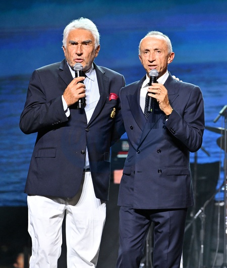 Exclusif - Bernard d'Alessandri, le secrétaire et directeur général du Yacht Club de Monaco, et Alberto Galassi, le PDG du Groupe Ferretti - Le groupe Simply Red a enflammé une scène flottante au Yacht Club de Monaco pour la soirée Ferretti Group, organisée dans le cadre du Monaco Private Preview. Entouré d'une flotte de superyachts étincelants, Mick Hucknall et ses musiciens ont livré un show vibrant, lançant en beauté leur tournée mondiale anniversaire tout en célébrant la décennie d'excellence de Ferretti. Monaco, le 7 septembre 2025. © Bruno Bebert/Bestimage Exclusive - No Web en Suisse / Belgique Simply Red rocked a floating stage at the Yacht Club de Monaco for the Ferretti Group party, held as part of the Monaco Private Preview. Surrounded by a fleet of gleaming superyachts, Mick Hucknall and his musicians delivered a vibrant show, kicking off their anniversary world tour in style while celebrating Ferretti's decade of excellence. Monaco, September 7, 2025