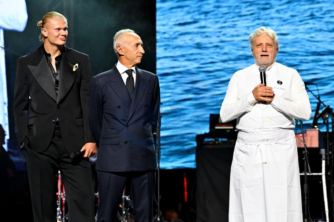 Exclusif - Erling Haaland, le footballeur norvégien, avant-centre à Manchester City, Alberto Galassi, le PDG du Groupe Ferretti, et le chef Antonio Mellino - Le groupe Simply Red a enflammé une scène flottante au Yacht Club de Monaco pour la soirée Ferretti Group, organisée dans le cadre du Monaco Private Preview. Entouré d'une flotte de superyachts étincelants, Mick Hucknall et ses musiciens ont livré un show vibrant, lançant en beauté leur tournée mondiale anniversaire tout en célébrant la décennie d'excellence de Ferretti. Monaco, le 7 septembre 2025. © Bruno Bebert/Bestimage Exclusive - No Web en Suisse / Belgique Simply Red rocked a floating stage at the Yacht Club de Monaco for the Ferretti Group party, held as part of the Monaco Private Preview. Surrounded by a fleet of gleaming superyachts, Mick Hucknall and his musicians delivered a vibrant show, kicking off their anniversary world tour in style while celebrating Ferretti's decade of excellence. Monaco, September 7, 2025