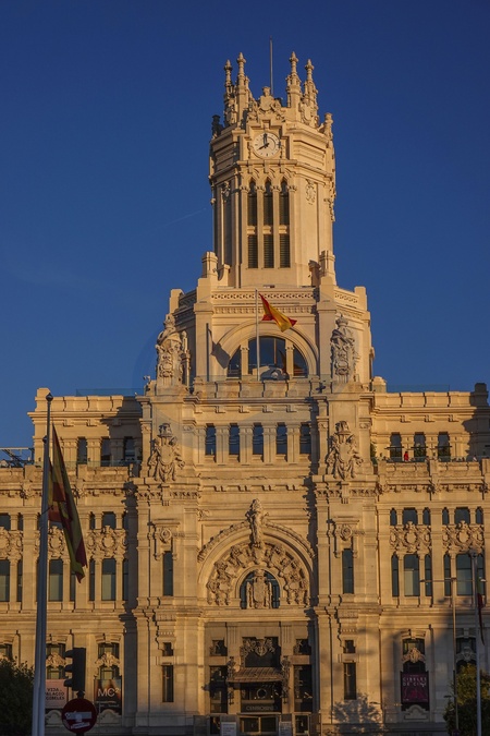 Spain, Madrid, Cibeles Palace, Palacio de Cibeles, formally known as Palacio de Comunicaciones today the City Hall of Madrid., Credit:Fabio Mazzarella / Avalon