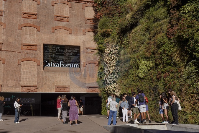 Spain, Madrid, Caixa Forum is a cultural center of arts and museum, located in Paseo del Prado in a former power station, it is owned by the not-for-profit banking foundation "la Caixa". The art center opened its doors in 2008 and it hosts temporary art exhibitions and cultural events. The Vertical Garden by Patrick Blanc at the square is also well-known., Credit:Fabio Mazzarella / Avalon