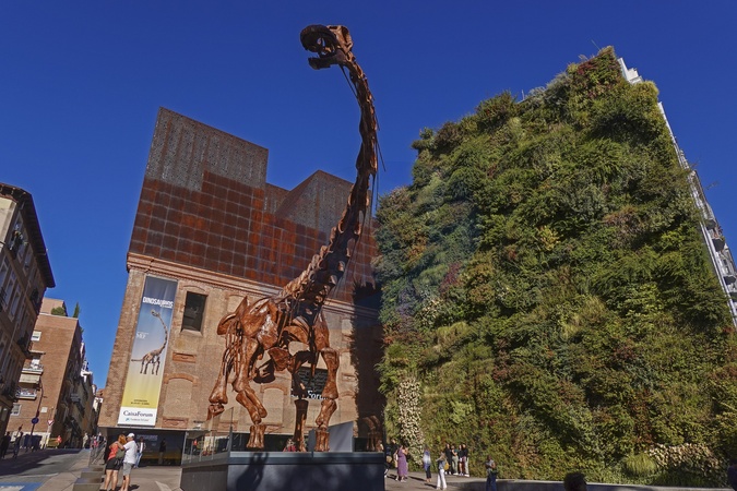 Spain, Madrid, Caixa Forum is a cultural center of arts and museum, located in Paseo del Prado in a former power station, it is owned by the not-for-profit banking foundation "la Caixa". The art center opened its doors in 2008 and it hosts temporary art exhibitions and cultural events. The Vertical Garden by Patrick Blanc at the square is also well-known., Credit:Fabio Mazzarella / Avalon