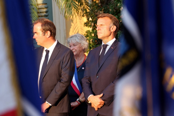 Info du 9 septembre 2025 ( Sebastien Lecornu nommé premier ministre) - Sebastien Lecornu, Emmanuel Macron. French Minister of Armed Forces Sebastien Lecornu, French President Emmanuel Macron stand at attention during a ceremony marking the 81st anniversary of the liberation of Bormes-les-Mimosas during World War II, Southern France, on August 17, 2025. Le ministre des Armees Sebastien Lecornu, le President Emmanuel Macron se tiennent au garde-a-vous lors d une ceremonie marquant le 81e anniversaire de la liberation de Bormes-les-Mimosas pendant la Seconde Guerre mondiale le dimanche 17 aout 2025. //ALAINROBERT_1Y8A8643/Credit:Alain ROBERT/SIPA/2508180757 © Alain Robert / Pool / Bestimage