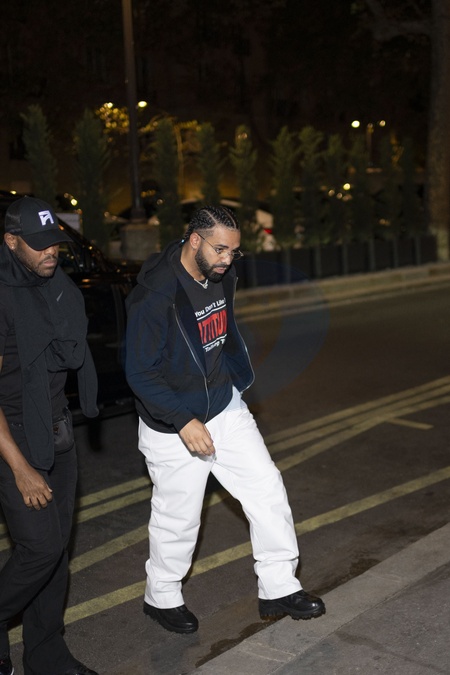 Exclusif - Le rappeur Drake quitte le restaurant Sax à Paris le 10 septembre 2025. © Yehiel Chekroune / Bestimage Exclusive Rapper Drake leaves Sax restaurant in Paris on 10 September 2025.