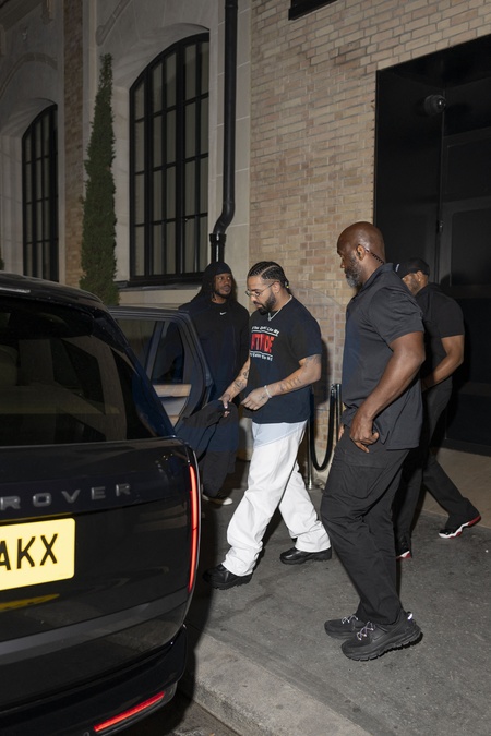 Exclusif - Le rappeur Drake quitte le restaurant Sax à Paris le 10 septembre 2025. © Yehiel Chekroune / Bestimage Exclusive Rapper Drake leaves Sax restaurant in Paris on 10 September 2025.