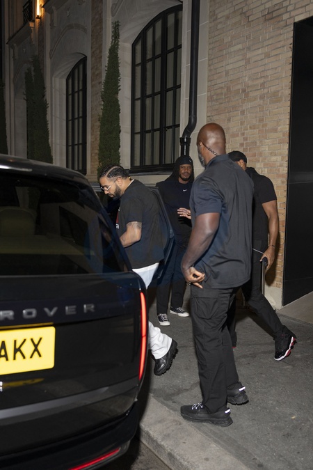 Exclusif - Le rappeur Drake quitte le restaurant Sax à Paris le 10 septembre 2025. © Yehiel Chekroune / Bestimage Exclusive Rapper Drake leaves Sax restaurant in Paris on 10 September 2025.