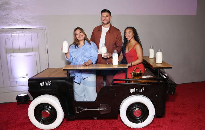9 Septmber 2025 . West Hollywood, California - Keyla Monterroso Mejia, Nick Barrotta, Priah Ferguson At got milk?'s 30th Anniversary Milk Mustache Celebration - The Lot at Formosa in West Hollywood., Credit:Sadou Faye / Avalon