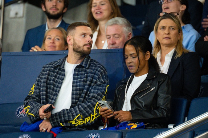 Christina Milian et son mari M. Pokora (Matt Pokora) - Célébrités dans les tribunes lors du match de qualification pour la Coupe du Monde 2026 entre la France et l'Islande (2-1) au Parc des Princes à Paris le 9 septembre 2025. ©Federico Pestellini/PsnewZ/Bestimage Celebrities in the stands during the 2026 World Cup qualifying match between France and Iceland (2-1) at the Parc des Princes in Paris on September 9, 2025.