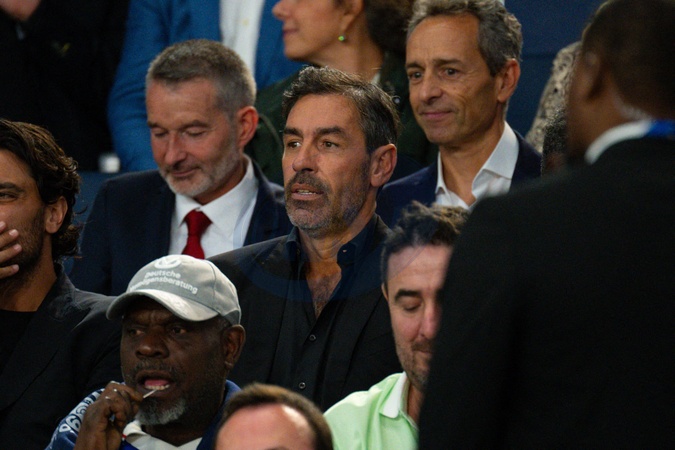 Robert Pires - Célébrités dans les tribunes lors du match de qualification pour la Coupe du Monde 2026 entre la France et l'Islande (2-1) au Parc des Princes à Paris le 9 septembre 2025. ©Federico Pestellini/PsnewZ/Bestimage Celebrities in the stands during the 2026 World Cup qualifying match between France and Iceland (2-1) at the Parc des Princes in Paris on September 9, 2025.