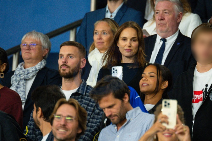 Natalie Portman et son fils Aleph, Christina Milian et son mari M. Pokora (Matt Pokora) - Célébrités dans les tribunes lors du match de qualification pour la Coupe du Monde 2026 entre la France et l'Islande (2-1) au Parc des Princes à Paris le 9 septembre 2025. ©Federico Pestellini/PsnewZ/Bestimage Celebrities in the stands during the 2026 World Cup qualifying match between France and Iceland (2-1) at the Parc des Princes in Paris on September 9, 2025.