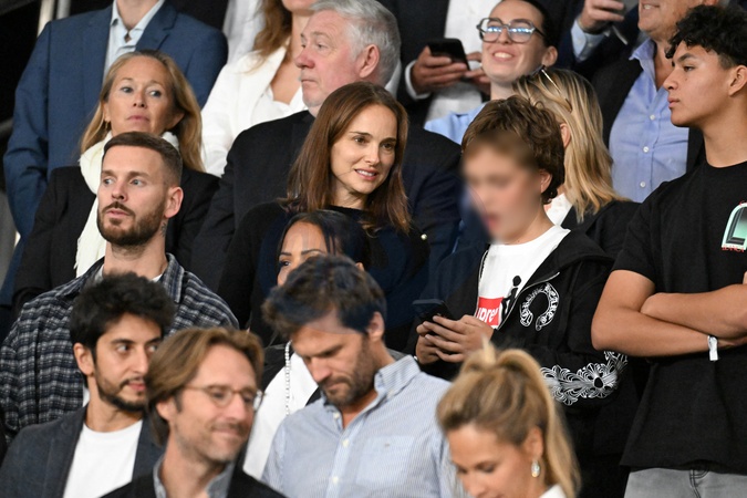 Natalie Portman et son fils Aleph, Christina Milian et son mari M. Pokora (Matt Pokora), Mathieu Vergne et sa femme Ophélie Meunier, Kamel Isker, Alexis Michalik - Célébrités dans les tribunes lors du match de qualification pour la Coupe du Monde 2026 entre la France et l'Islande (2-1) au Parc des Princes à Paris le 9 septembre 2025. © Lionel Urman/Bestimage Celebrities in the stands during the 2026 World Cup qualifying match between France and Iceland (2-1) at the Parc des Princes in Paris on September 9, 2025.