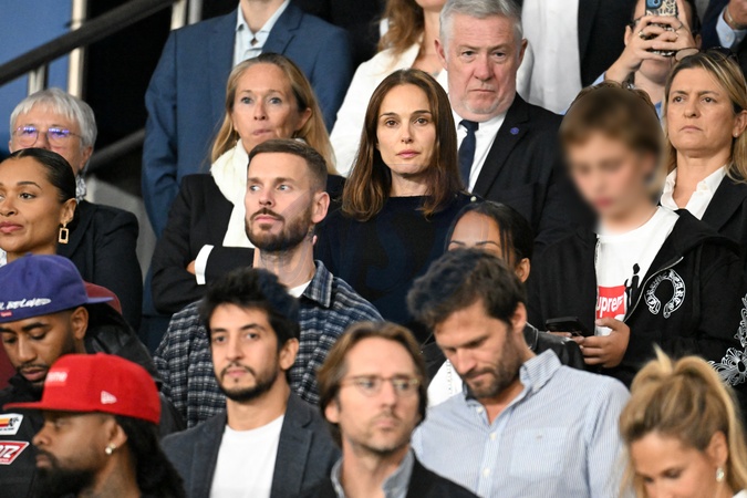 Natalie Portman et son fils Aleph, Christina Milian et son mari M. Pokora (Matt Pokora), Kamel Isker, Alexis Michalik - Célébrités dans les tribunes lors du match de qualification pour la Coupe du Monde 2026 entre la France et l'Islande (2-1) au Parc des Princes à Paris le 9 septembre 2025. © Lionel Urman/Bestimage Celebrities in the stands during the 2026 World Cup qualifying match between France and Iceland (2-1) at the Parc des Princes in Paris on September 9, 2025.