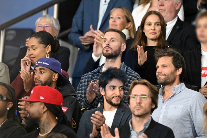 Natalie Portman et son fils Aleph, Christina Milian et son mari M. Pokora (Matt Pokora), Kamel Isker, Alexis Michalik - Célébrités dans les tribunes lors du match de qualification pour la Coupe du Monde 2026 entre la France et l'Islande (2-1) au Parc des Princes à Paris le 9 septembre 2025. © Lionel Urman/Bestimage Celebrities in the stands during the 2026 World Cup qualifying match between France and Iceland (2-1) at the Parc des Princes in Paris on September 9, 2025.