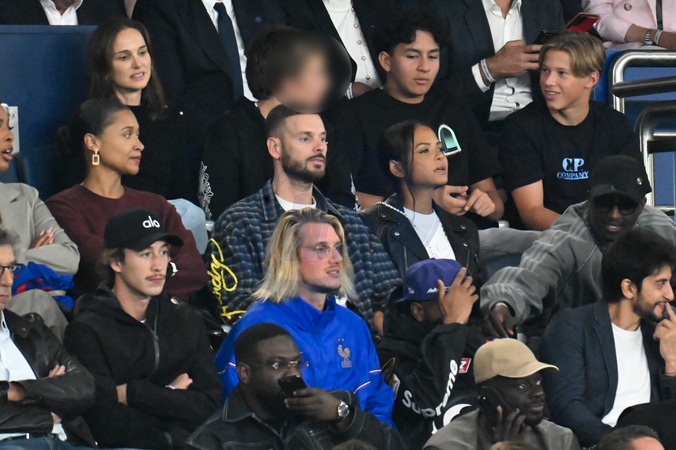 Natalie Portman et son fils Aleph, Christina Milian et son mari M. Pokora (Matt Pokora), Paul Mirabel - Célébrités dans les tribunes lors du match de qualification pour la Coupe du Monde 2026 entre la France et l'Islande (2-1) au Parc des Princes à Paris le 9 septembre 2025. © Lionel Urman/Bestimage Celebrities in the stands during the 2026 World Cup qualifying match between France and Iceland (2-1) at the Parc des Princes in Paris on September 9, 2025.