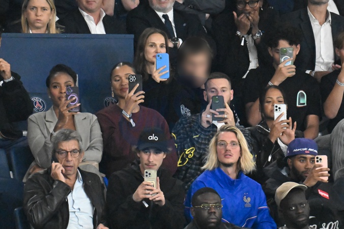 Natalie Portman et son fils Aleph, Angélique Angarni-Filopon (Miss France 2025), Pokora (Matt Pokora), Michel Cymes, Paul Mirabel - Célébrités dans les tribunes lors du match de qualification pour la Coupe du Monde 2026 entre la France et l'Islande (2-1) au Parc des Princes à Paris le 9 septembre 2025. © Lionel Urman/Bestimage Celebrities in the stands during the 2026 World Cup qualifying match between France and Iceland (2-1) at the Parc des Princes in Paris on September 9, 2025.