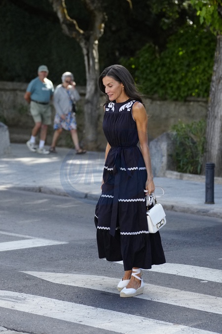 Królowa Letizia przy wyjściu z konferencji „Kobiety, sport i społeczeństwo” zorganizowanej w Casa de la Cultura „Paco de Lucía” w Torrelodones