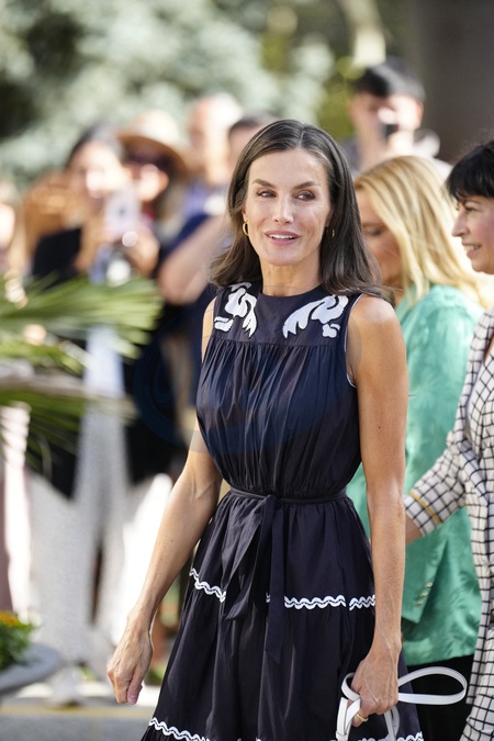 Królowa Letizia przy wyjściu z konferencji „Kobiety, sport i społeczeństwo” zorganizowanej w Casa de la Cultura „Paco de Lucía” w Torrelodones