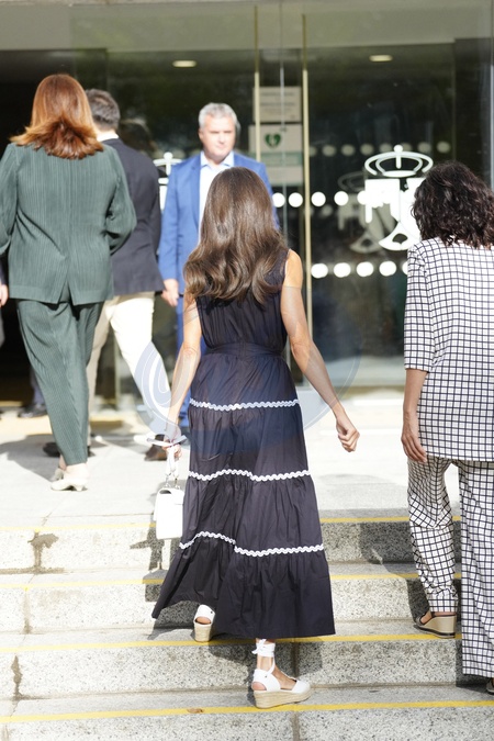 Queen Letizia of Spain (la reine Letizia d'Espagne) attends the colloquium "Women, sport and society" held at the Casa de la Cultura "Paco de Lucia", on September 10, 2025, in Torrelodones (Madrid, Spain). This colloquium was held on the occasion of the second edition of the solidarity basketball tournament organized by the CHALLENGE 40 BASKET team, to raise awareness about female genital mutilation and other abuses against women.