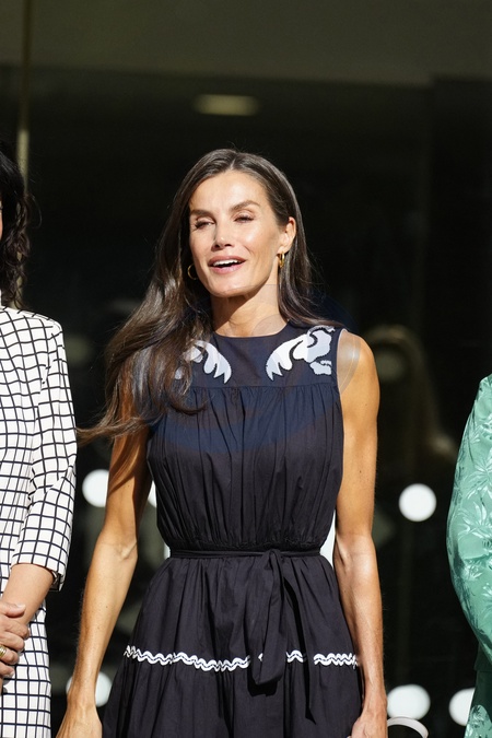 Królowa Letizia przy wyjściu z konferencji „Kobiety, sport i społeczeństwo” zorganizowanej w Casa de la Cultura „Paco de Lucía” w Torrelodones
