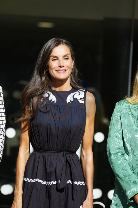 Queen Letizia of Spain (la reine Letizia d'Espagne) attends the colloquium "Women, sport and society" held at the Casa de la Cultura "Paco de Lucia", on September 10, 2025, in Torrelodones (Madrid, Spain). This colloquium was held on the occasion of the second edition of the solidarity basketball tournament organized by the CHALLENGE 40 BASKET team, to raise awareness about female genital mutilation and other abuses against women.