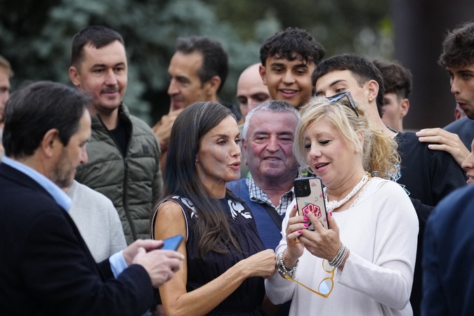 Królowa Letizia przy wyjściu z konferencji „Kobiety, sport i społeczeństwo” zorganizowanej w Casa de la Cultura „Paco de Lucía” w Torrelodones