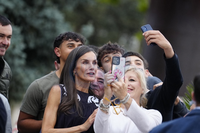 Królowa Letizia przy wyjściu z konferencji „Kobiety, sport i społeczeństwo” zorganizowanej w Casa de la Cultura „Paco de Lucía” w Torrelodones
