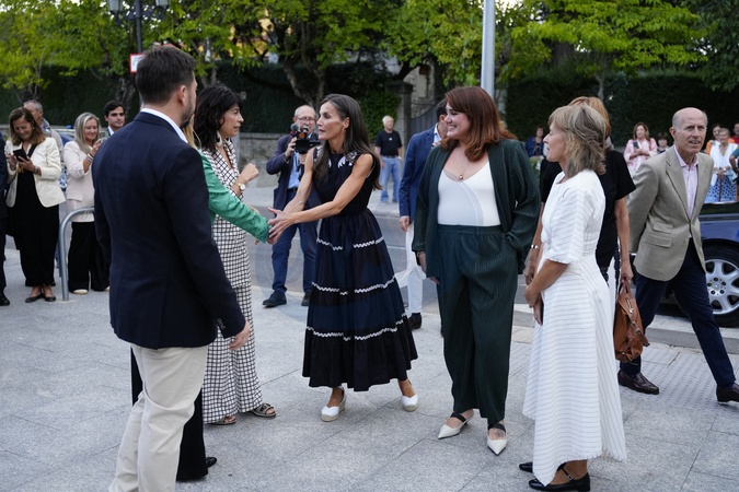 Królowa Letizia przy wyjściu z konferencji „Kobiety, sport i społeczeństwo” zorganizowanej w Casa de la Cultura „Paco de Lucía” w Torrelodones