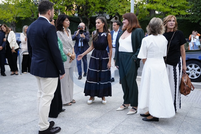 Królowa Letizia przy wyjściu z konferencji „Kobiety, sport i społeczeństwo” zorganizowanej w Casa de la Cultura „Paco de Lucía” w Torrelodones