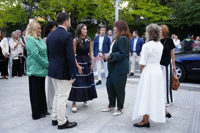 Królowa Letizia przy wyjściu z konferencji „Kobiety, sport i społeczeństwo” zorganizowanej w Casa de la Cultura „Paco de Lucía” w Torrelodones