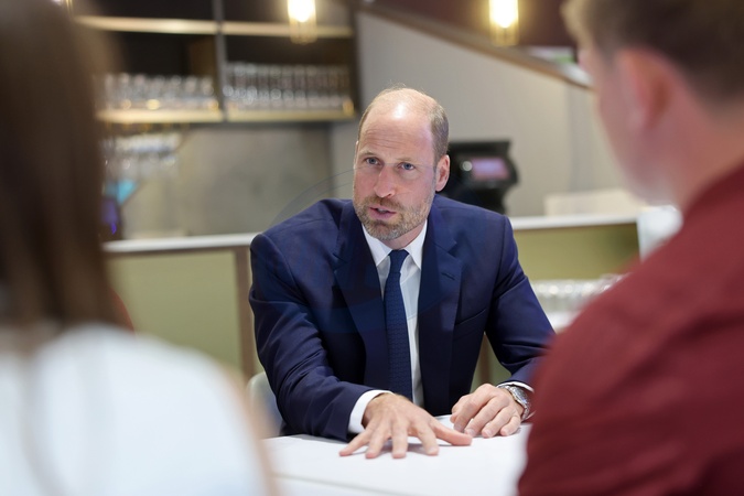 CARDIFF, WALES - SEPTEMBER 10: Prince William, Prince of Wales talks to teammates from Jac's football team Ammanford FC during his visit to new a mental health hub run by the Jac Lewis Foundation on World Suicide Prevention Day at Principality Stadium on September 10, 2025 in Cardiff, Wales., Credit:Chris Jackson / Avalon