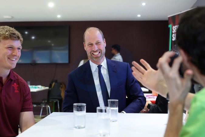 CARDIFF, WALES - SEPTEMBER 10: (EDITORS NOTE: Retransmission with alternate crop.) Prince William, Prince of Wales talks to Jac Morgan (L) and other members of the Welsh Rugby Union during his visit to new a mental health hub run by the Jac Lewis Foundation on World Suicide Prevention Day at Principality Stadium on September 10, 2025 in Cardiff, Wales., Credit:Chris Jackson / Avalon