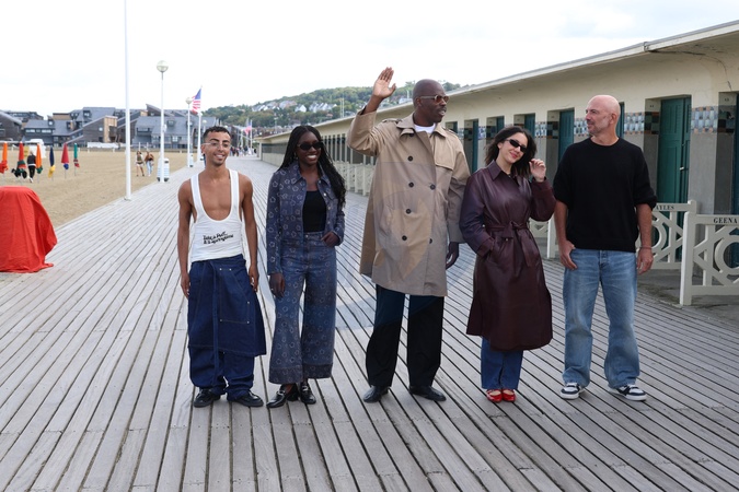 Bilal Hassani, Suzy Bemba, Jean-Pascal Zadi (président), Anaïde Rozam et Julien Colonna lors du photocall du jury Révélation sur les planches du 51ème Festival du Cinéma Américain de Deauville, France, le 10 septembre 2025. © Denis Guignebourg/Bestimage Révélation jury Photocall on the stage of the 51st American Film Festival in Deauville, France, on September 10, 2025.