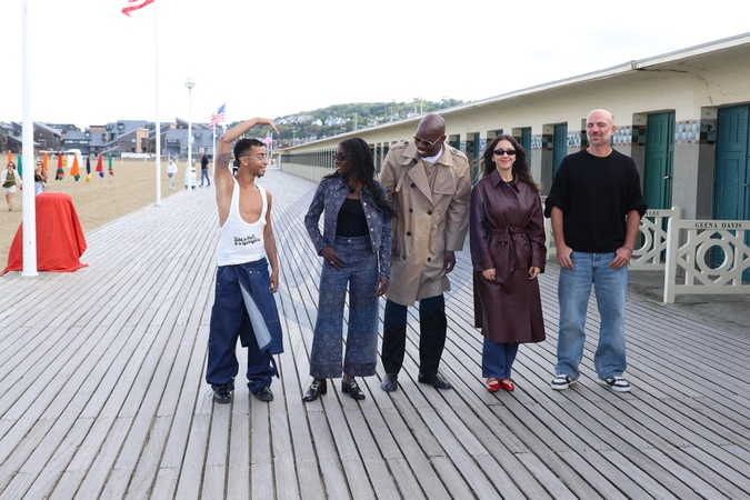 Bilal Hassani, Suzy Bemba, Jean-Pascal Zadi (président), Anaïde Rozam et Julien Colonna lors du photocall du jury Révélation sur les planches du 51ème Festival du Cinéma Américain de Deauville, France, le 10 septembre 2025. © Denis Guignebourg/Bestimage Révélation jury Photocall on the stage of the 51st American Film Festival in Deauville, France, on September 10, 2025.