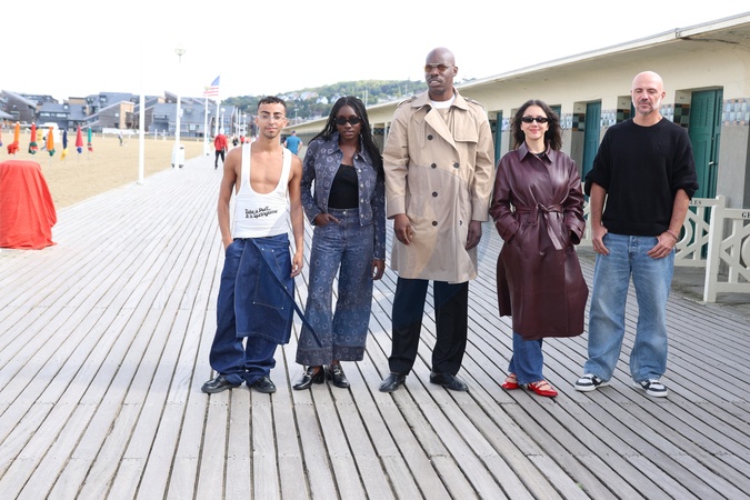 Bilal Hassani, Suzy Bemba, Jean-Pascal Zadi (président), Anaïde Rozam et Julien Colonna lors du photocall du jury Révélation sur les planches du 51ème Festival du Cinéma Américain de Deauville, France, le 10 septembre 2025. © Denis Guignebourg/Bestimage Révélation jury Photocall on the stage of the 51st American Film Festival in Deauville, France, on September 10, 2025.
