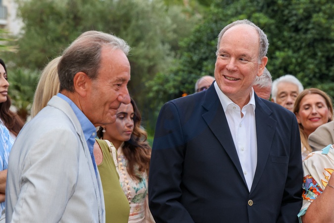 Exclusif - No Tabloïds - Le prince Albert II de Monaco et Patrick Cesari, maire de Roquebrune-Cap-Martin lors de la 14ème édition des Journées de l'Art-Bre (hommage à la championne olympique de voile Virginie Hériot) au parc du Cap Martin à Roquebrune-Cap-Martin, France, le 9 septembre 2025. © Claudia Albuquerque/Bestimage No Tabloïds - No Mail Online - Only for OK, Hello, Grazia in UK - 14th edition of the Journées de l'Art-Bre (tribute to Olympic sailing champion Virginie Hériot) at the Cap Martin park in Roquebrune-Cap-Martin, France, on September 9, 2025.