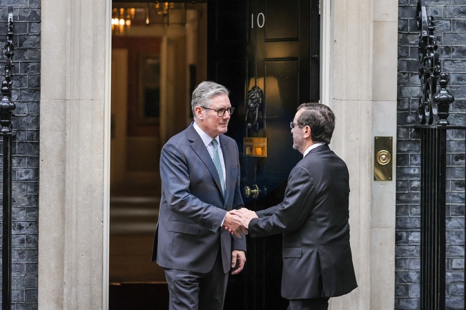 President of Israel Isaac Herzog welcomed by Sir Keir Starmer in Downing Street, London, UK