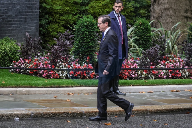 President of Israel Isaac Herzog welcomed by Sir Keir Starmer in Downing Street, London, UK